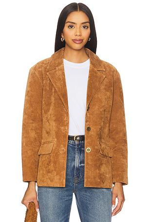Blazer boyfriend de gamuza atlas en color marrón Central Park West
