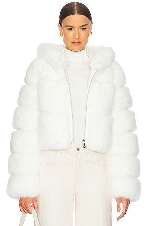 Chaqueta faux fox fur short en color blanco Adrienne Landau