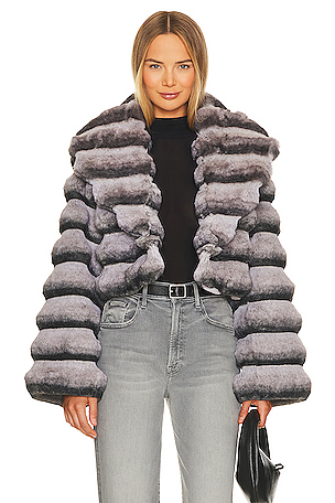 Chaqueta de chencilla de piel sentética en color gris Adrienne Landau