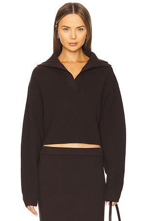 Suéter polo de cachemir de punto en color Chocolate Enza Costa