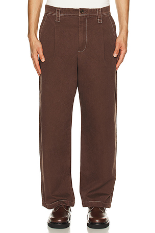 Pantalón con trabilla 2 pleats en color marrón Beams Plus