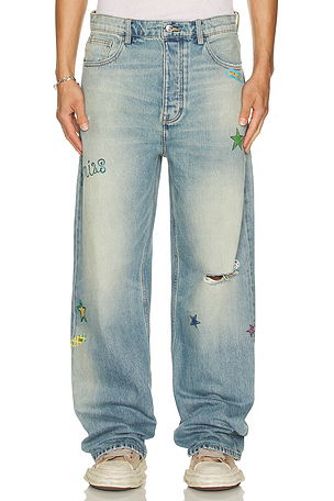 Pantalón denim baggy fit en color azul vowels
