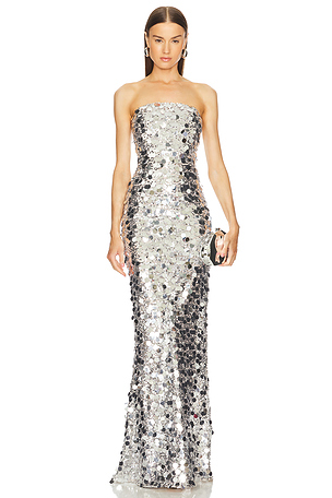 Vestido largo farah strapless en color plateado metálico Bronx and Banco