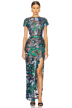 Vestido largo valenteN/A en color plateado metálico House of Harlow 1960