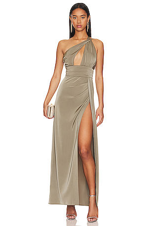 Vestido largo adley en color verde oliva Lovers and Friends