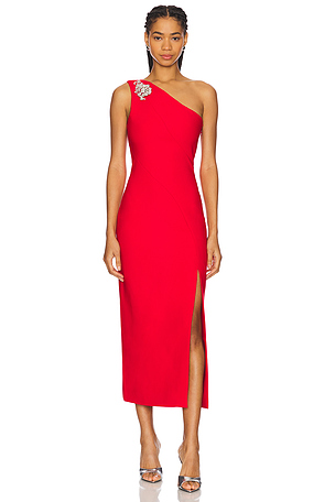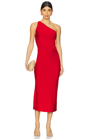VESTIDO MIDI ROJO DE UN SOLO HOMBRO