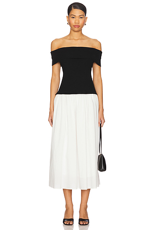 Vestido con hombros descubiertos y técnica mixta darcy en color negro, blanco Central Park West