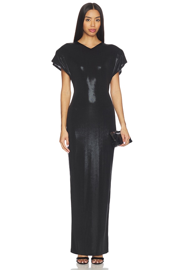 VESTIDO CAP SLEEVE SHOULDER PAD LONG