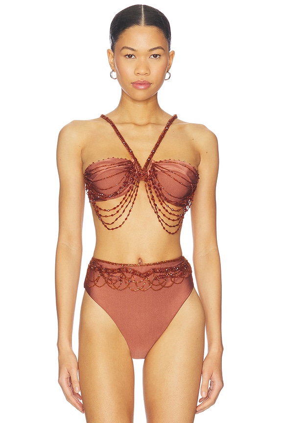 x Camila Coelho Golden Lune Halterneck Bikini Top
